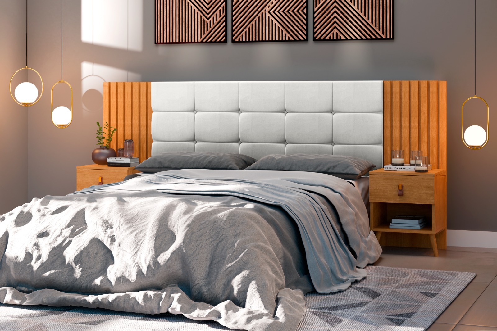 Cabeceira Dinamarca 1.40/1.60 100%MDF com 2 Criados - Barreto Lonçarcci