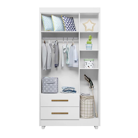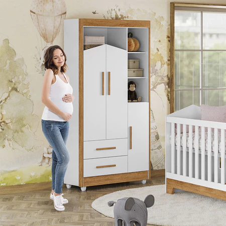 Guarda-Roupa com 3 portas e 2 gavetas, proporcionando espaço amplo e organizado para roupas e acessórios.