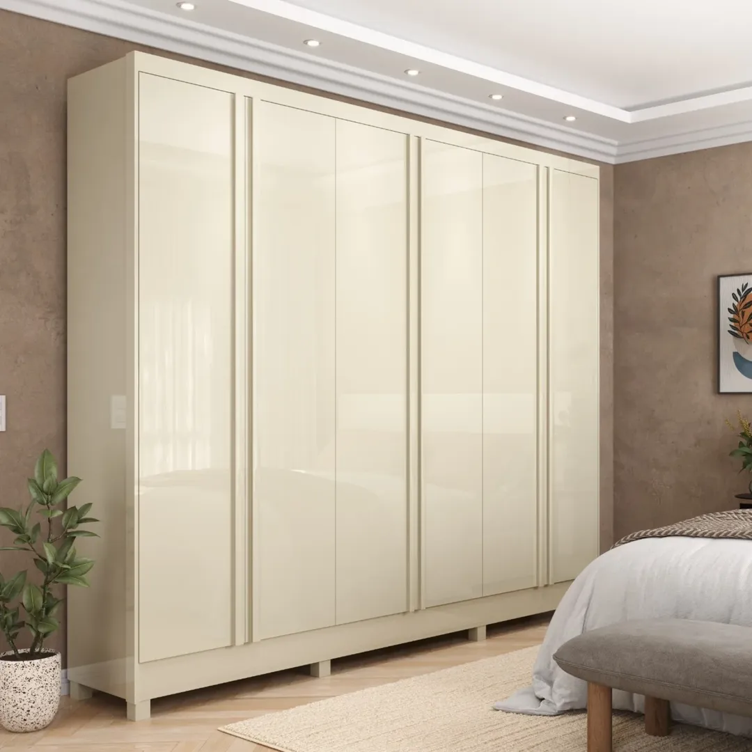 Estrutura: Puxadores em MDF e cabideiros em alumínio