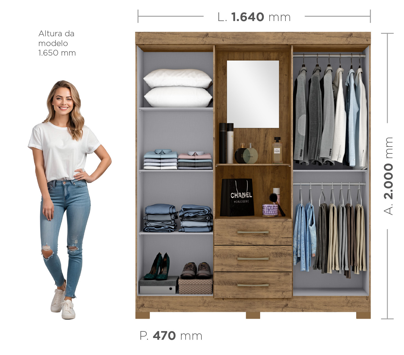 - Kit Pés incluso no Guarda-Roupa.
