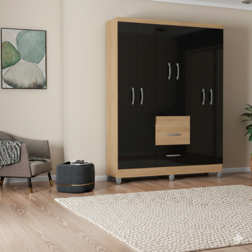 - 6 portas com dobradiças metálicas