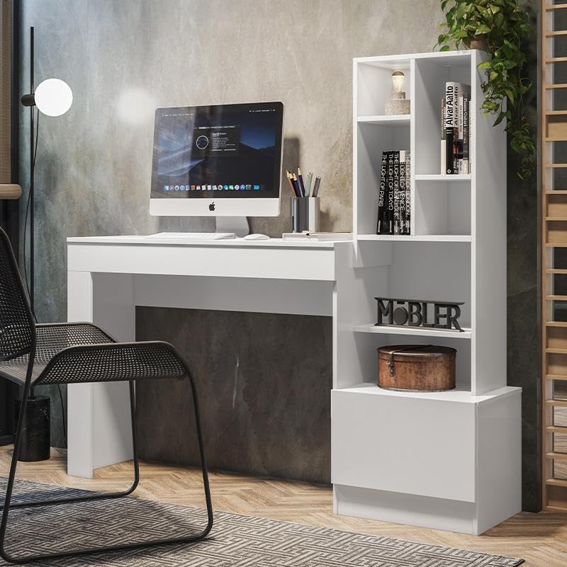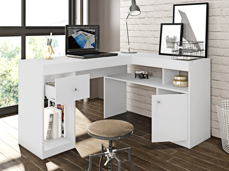 De tamanho adequado para não roubar todo o protagonismo do cômodo e criar um ambiente próprio para realizar as tarefas com empenho, ela possui um amplo tampo para você apoiar notebook e outros objetos essenciais à rotina como abajur, canetas e papéis + 1 gaveta e compartimento interno para os demais itens.