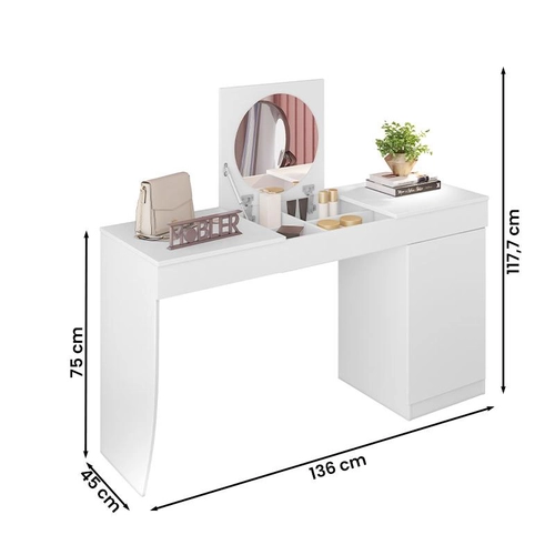 Penteadeira Escrivaninha Com Espelho Crystal Branco – Mobler