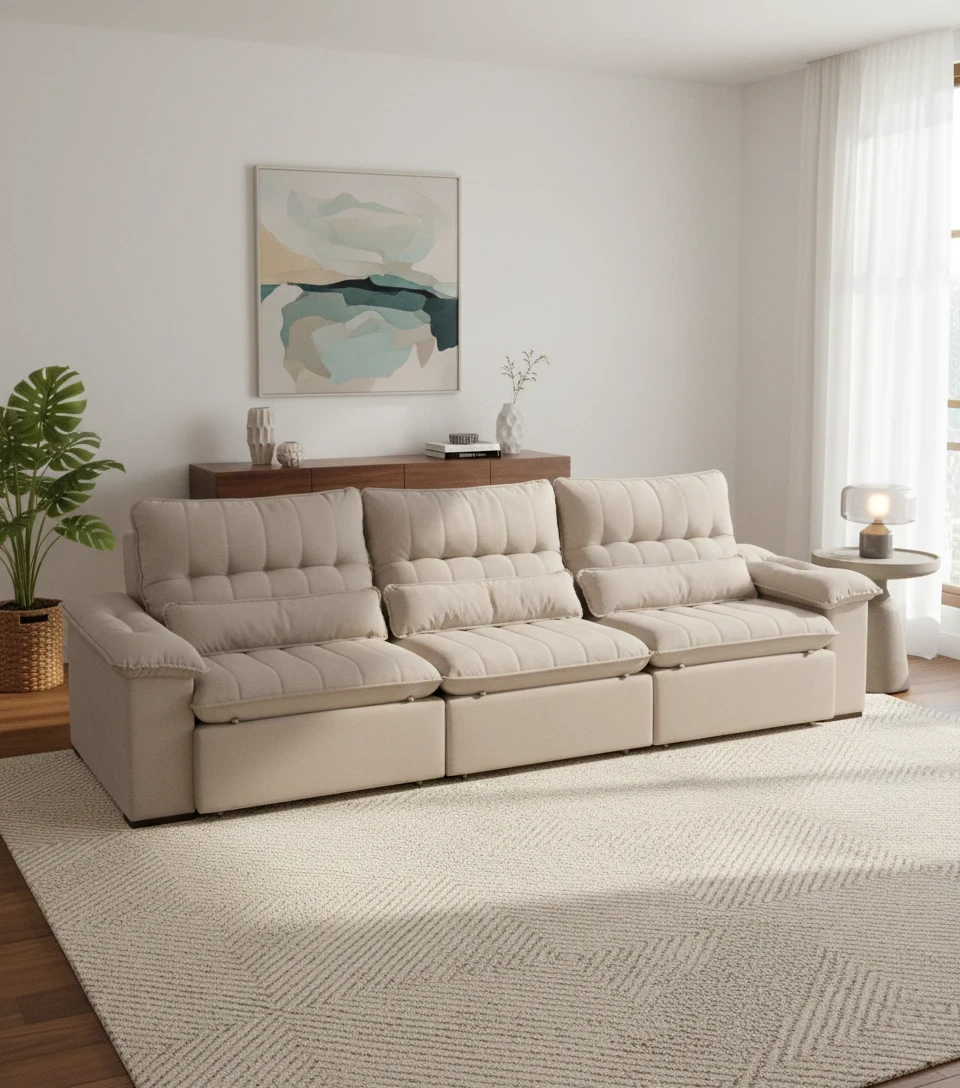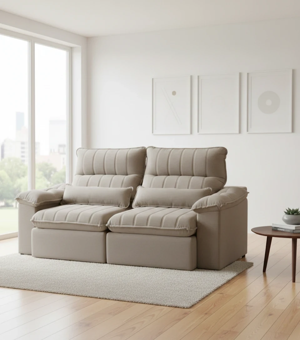 - Assento: Retrátil nos assentos, pillow com manta siliconada, espuma D-33 soft, molas espiral e molas pocket.